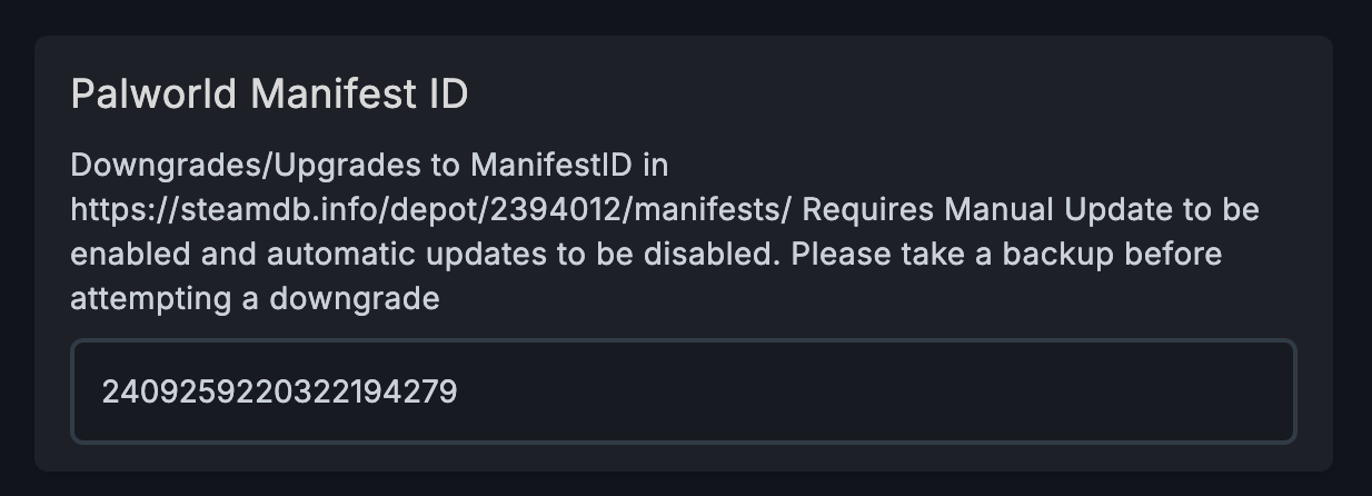 - Set the manifest ID to your desired version (find the ID from steamdb.info)