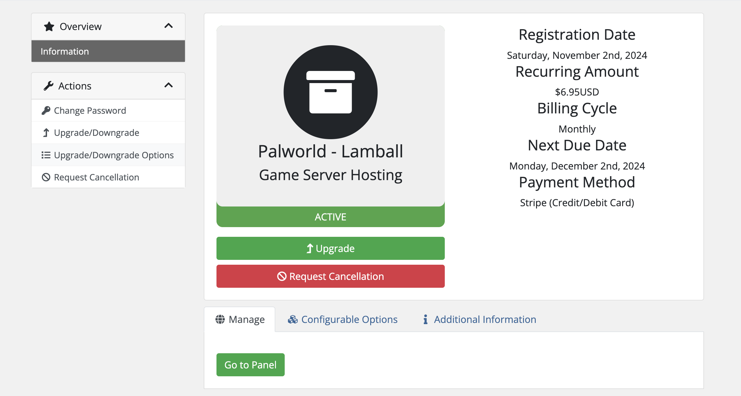 Log in to your berrybyte billing account and select the service you want to upgrade. Then, on the left you’ll find Upgrade/Downgrade (for RAM-based servers) or Upgrade/Downgrade Options (player slot-based servers).