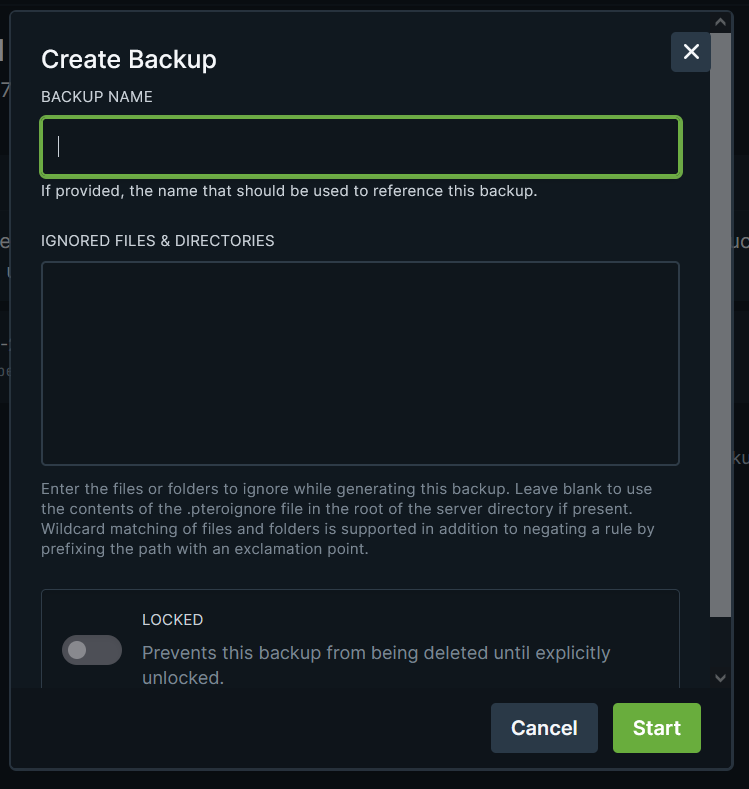 : If there are any files or folders you would like to ignore and not take a backup of, list them here. You will need to enter the path of the directory/file relative to the main directory, e.g./plugins/Dynmap/*