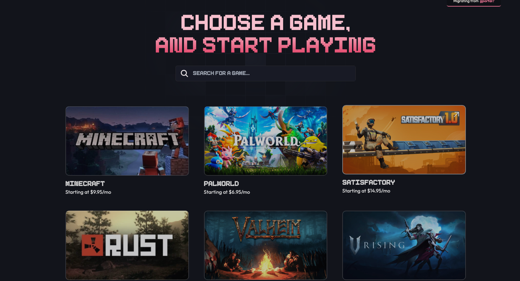 Head to berrybyte.net and select Create a Server. We support a wide variety of popular games, each optimized for the best hosting experience: